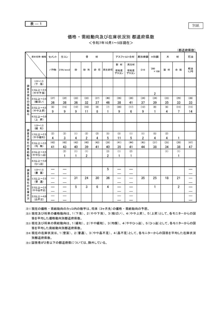10月の主要建設資材の需給動向は全ての調査対象資材において均衡~主要建設資材需給・価格動向調査(令和7年10月1~5日)の結果~