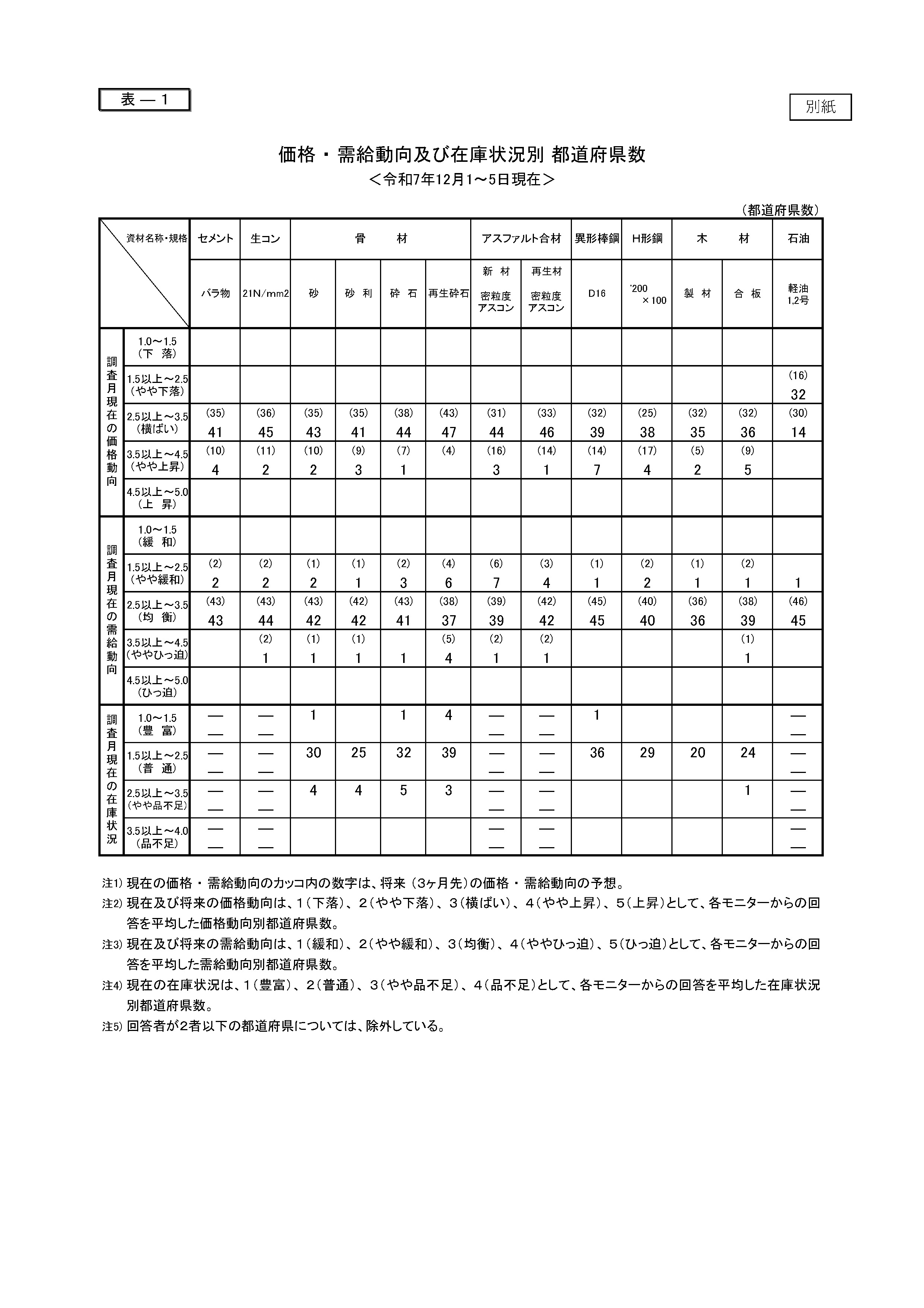 12月の主要建設資材の需給動向は全ての調査対象資材において均衡~主要建設資材需給・価格動向調査(令和7年12月1~5日現在)の結果~